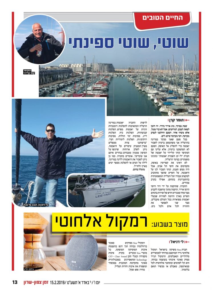 |  | פירגנו לנו כתבה מושלמת בעיתון לאישה, שישה עמודים שלמים על העסק שלנו “לי-ים השכרת יאכטות” לכתבה המלאה לחצו כאן! |